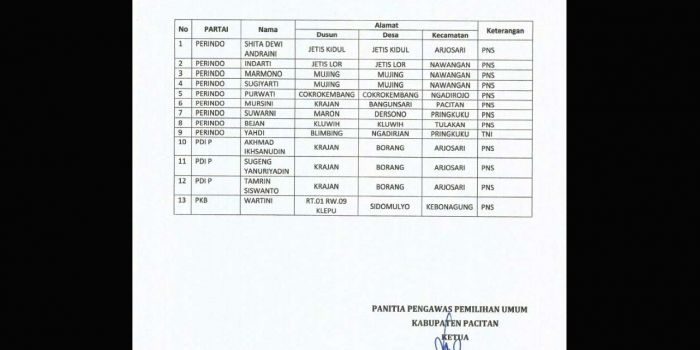 Belasan ASN Aktif di Pacitan Diduga Terlibat Keanggotaan Parpol Calon Peserta Pemilu Kamis, 23 November 2017 23:11 WIB