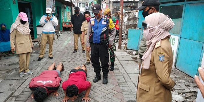 Tak Pakai Masker, Sejumlah Warga Jalani Sanksi Sosial Nyapu Halaman Kantor Kecamatan Krian Senin, 06 Juli 2020 17:35 WIB