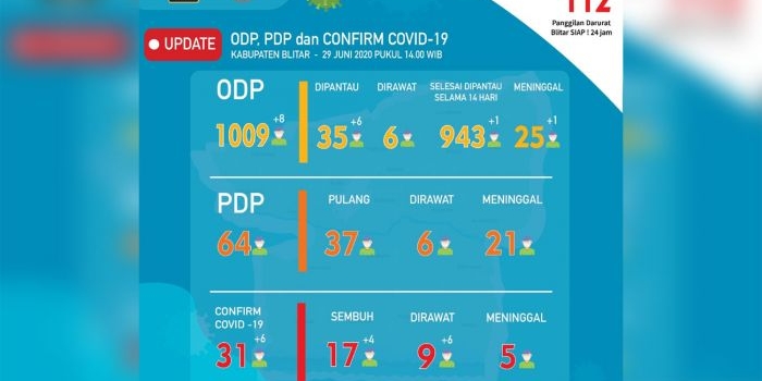 Ada 7 Positif Corona Baru di Blitar Raya, 3 di antaranya ASN Pemkab Blitar Selasa, 30 Juni 2020 10:38 WIB
