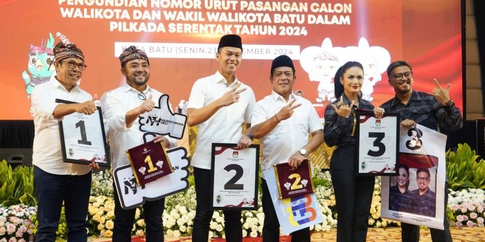 Sah! KPU Undi dan Tetapkan Nomor Tiga Paslon Peserta Pilwali Batu 2024 Senin, 23 September 2024 23:03 WIB