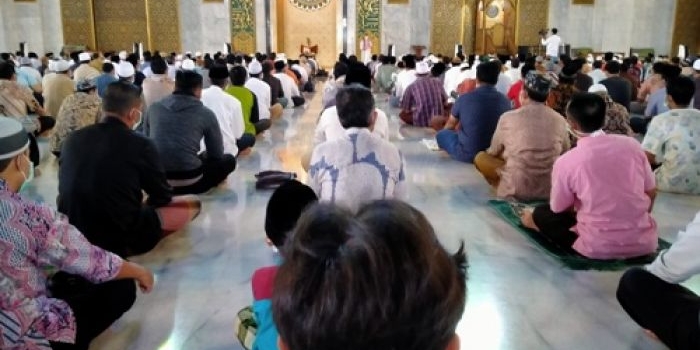 Ikrar Syahadat Muallaf Tetap Jalan, Jamaah Salat Jumat Masjid Al-Akbar Lewati Water Scan Jumat, 27 Maret 2020 15:18 WIB