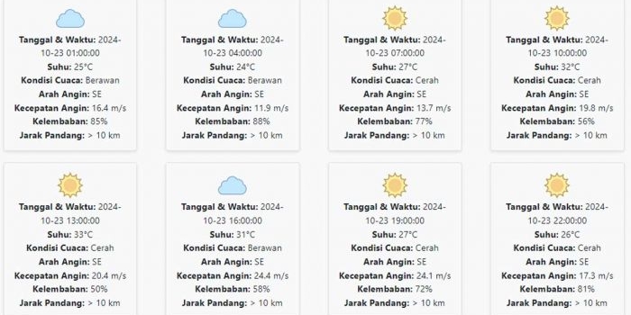 Cuaca Nganjuk Hari ini Rabu, 23 Oktober 2024: Diperkirakan Berawan dengan Suhu 24-33 °C Rabu, 23 Oktober 2024 01:35 WIB