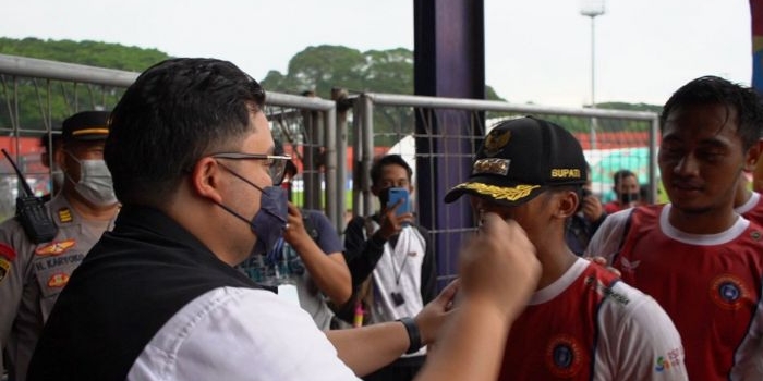 Lolos 16 Besar, Bupati Kediri Berikan Topinya untuk Kapten Persedikab Kamis, 24 Februari 2022 11:02 WIB