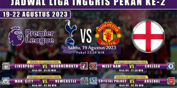 Jadwal Liga Inggris 2023-2024 Pekan ke-2: Tottenham vs Manchester United, City Tantang Newcastle Kamis, 17 Agustus 2023 23:07 WIB