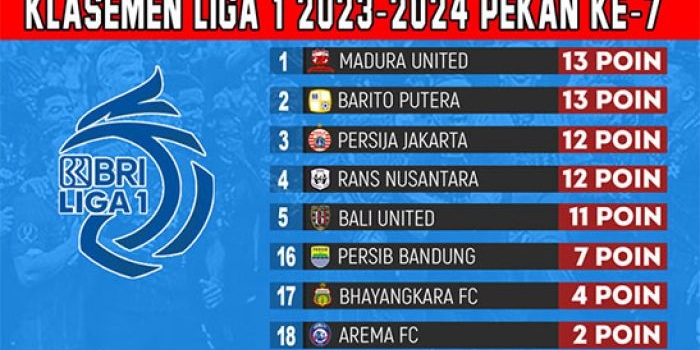 Klasemen BRI Liga 1 2023-2024 Pekan Ketujuh: Persib Gantikan Persebaya di Zona Merah Kamis, 10 Agustus 2023 10:28 WIB