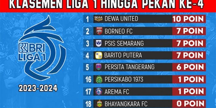 Klasemen Liga 1 2023-2024 Pekan Keempat 21 Juli 2023: Dewa United Melenggang ke Puncak Jumat, 21 Juli 2023 22:04 WIB