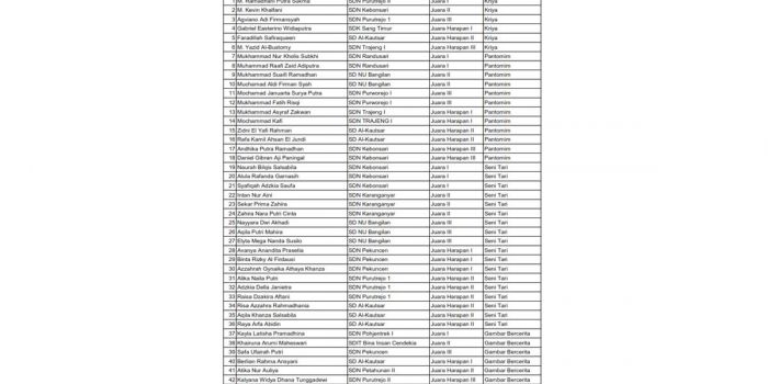 Daftar Kejuaraan Festival Lomba Seni Siswa Nasional (FLS2N) SD Disdikbud Kota Pasuruan 2024 Kamis, 20 Juni 2024 00:00 WIB