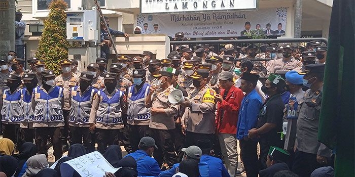 Tolak Perpanjangan Jabatan Presiden, Ratusan Mahasiswa di Lamongan Demo Kamis, 14 April 2022 00:22 WIB