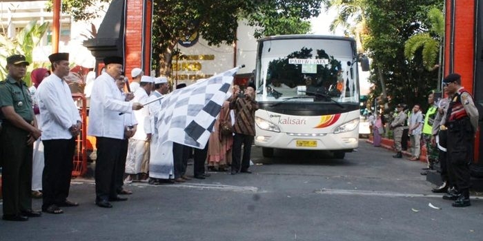 Disaksikan Ratusan Pengantar, Pj Bupati Nganjuk Lepas JCH Kloter 59 Minggu, 05 Agustus 2018 19:29 WIB