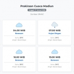 Prakiraan Cuaca Kota Madiun Hari ini Senin, 2 Februari 2026: Suhu 23-29°C, Kecepatan Angin 7.1 m/s. Senin, 02 Februari 2026 03:28 WIB
