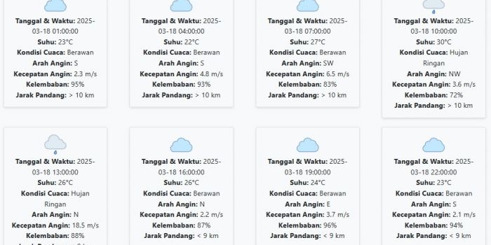 Prakiraan Cuaca Situbondo Hari ini Selasa, 18 Maret 2025: Suhu 22-30 °C, Kecepatan Angin 5.46 m/s Selasa, 18 Maret 2025 04:55 WIB