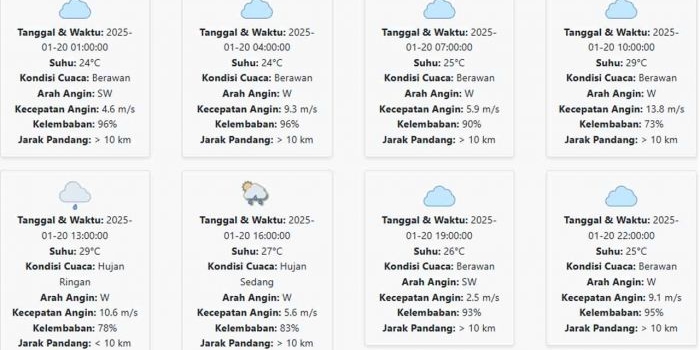 Prakiraan Cuaca Sidoarjo Hari ini Senin, 20 Januari 2025: Sore Hujan Sedang Senin, 20 Januari 2025 03:24 WIB