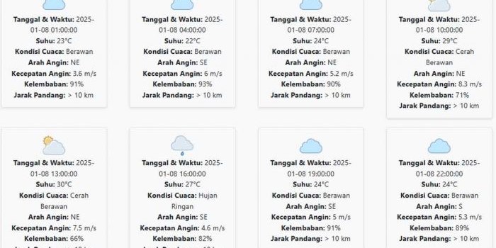 Prakiraan Cuaca Pasuruan Hari ini Rabu, 8 Januari 2025: Suhu 22-30 °C, Kecepatan Angin 5.69 m/s Rabu, 08 Januari 2025 03:05 WIB