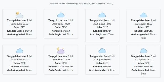 Cuaca Kota Surabaya Hari ini Selasa, 1 Juli 2025: Diperkirakan Cerah Berawan dengan Suhu 24-32°C Selasa, 01 Juli 2025 01:39 WIB
