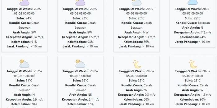 Prakiraan Cuaca Situbondo Hari ini Jumat, 2 Mei 2025: Suhu 22-30 °C, Kecepatan Angin 7.65 m/s Jumat, 02 Mei 2025 01:04 WIB