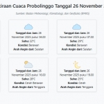 Prakiraan Cuaca Probolinggo Hari ini Rabu, 26 November 2025: Suhu 22-32°C, Kecepatan Angin 18.5 m/s. Rabu, 26 November 2025 02:21 WIB