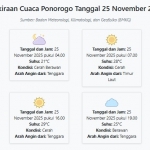 Cuaca Ponorogo Hari ini Selasa, 25 November 2025: Diperkirakan Cerah Berawan dengan Suhu 21-32°C Selasa, 25 November 2025 01:52 WIB
