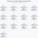 Prakiraan Cuaca Jember Hari ini Senin, 24 November 2025: Suhu 23-30°C, Kecepatan Angin 18.5 m/s. Senin, 24 November 2025 02:39 WIB
