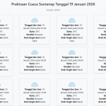Cuaca Sumenep Hari ini Senin, 19 Januari 2026: Diperkirakan Berawan dengan Suhu 24-29°C Senin, 19 Januari 2026 02:38 WIB