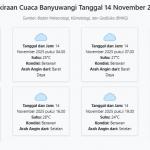 Prakiraan Cuaca Banyuwangi Hari ini Jumat, 14 November 2025: Suhu 24-31°C, Kecepatan Angin 18.6 m/s. Jumat, 14 November 2025 00:38 WIB