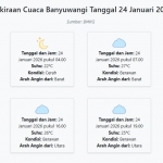 Cuaca Banyuwangi Hari ini Sabtu, 24 Januari 2026: Diperkirakan Berawan dengan Suhu 22-30°C Sabtu, 24 Januari 2026 01:29 WIB