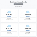 Prakiraan Cuaca Gresik Hari ini Minggu, 25 Januari 2026: Suhu 25-28°C, Kecepatan Angin 32.3 m/s. Minggu, 25 Januari 2026 01:13 WIB