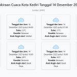 Cuaca Kota Kediri Hari ini Minggu, 14 Desember 2025: Diperkirakan Berawan dengan Suhu 23-31°C Minggu, 14 Desember 2025 01:58 WIB
