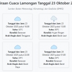 Prakiraan Cuaca Lamongan Hari ini Sabtu, 4 Oktober 2025: Suhu 23-34°C, Kecepatan Angin 5.3 m/s. Sabtu, 04 Oktober 2025 02:53 WIB